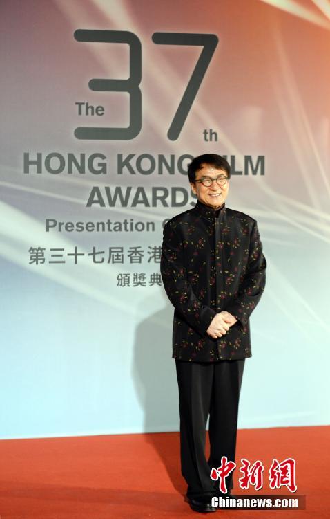 4月15日晚,第37届香港电影金像奖颁奖典礼在香港文化中心大剧院举行,成龙踏上红地毯。中新社记者 麦尚�F 摄