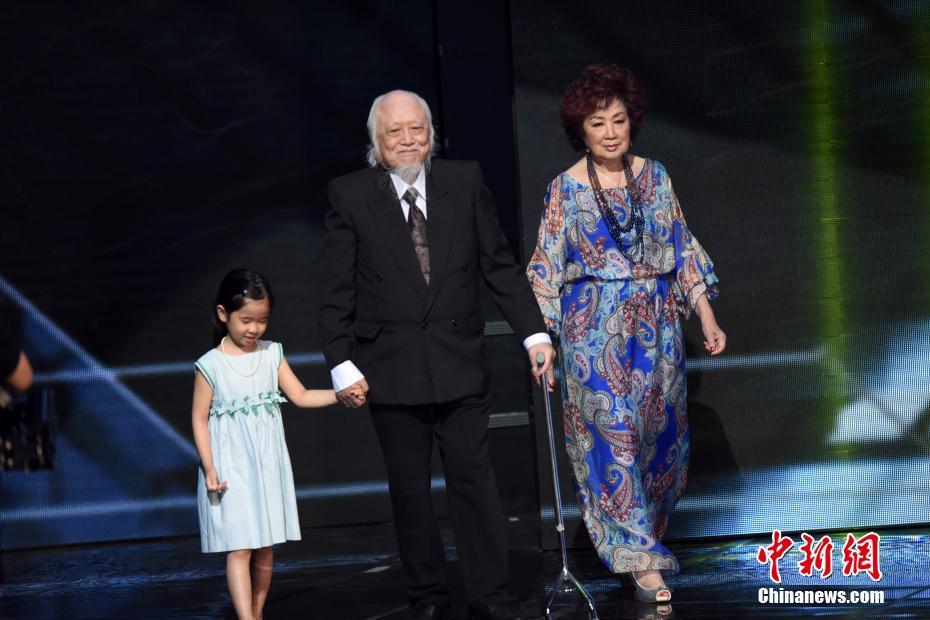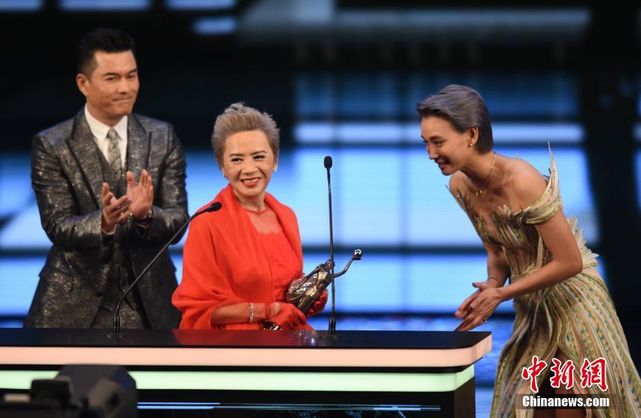 4月15日晚,第37届香港电影金像奖颁奖典礼在香港文化中心大剧院举行,资深导演楚原(中)获颁终身成就奖。