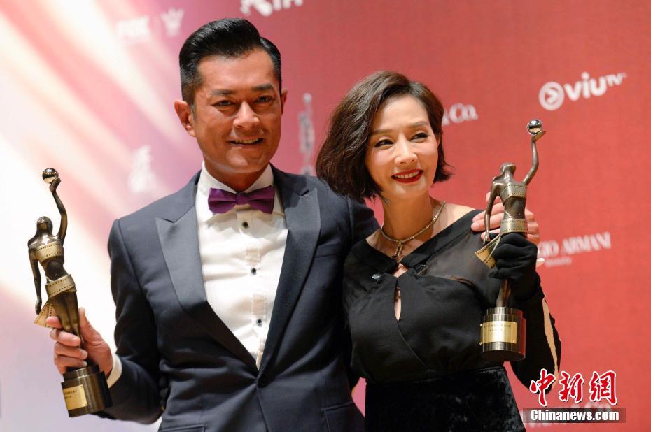 4月15日晚,第37届香港电影金像奖颁奖典礼在香港文化中心大剧院举行,演员古天乐和毛舜筠分别获得电影金像奖最佳男女主角。中新社记者 麦尚�F 摄
