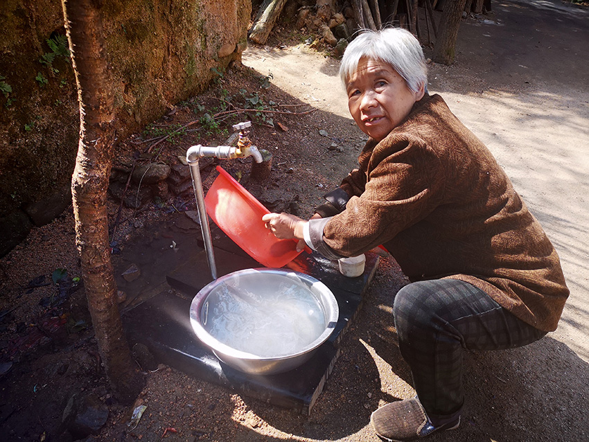 闺女、女婿下地干活了,老太太在家洗洗涮涮忙个不停。院子里有眼井,是盖房子时打的,如今已经使用20多年了。现在院子里又安装了自来水,家里用水更方便了。