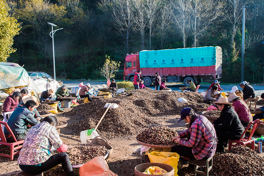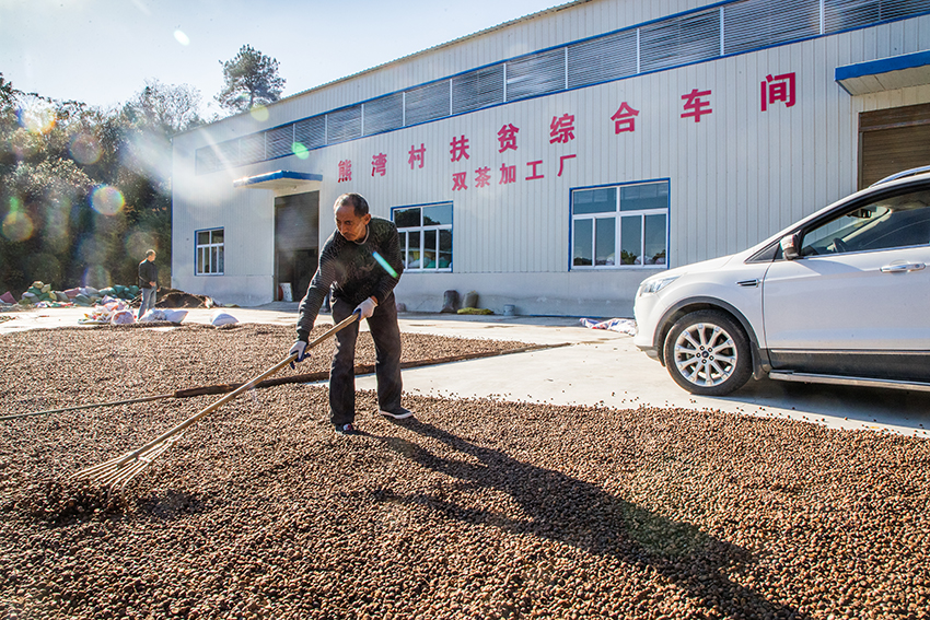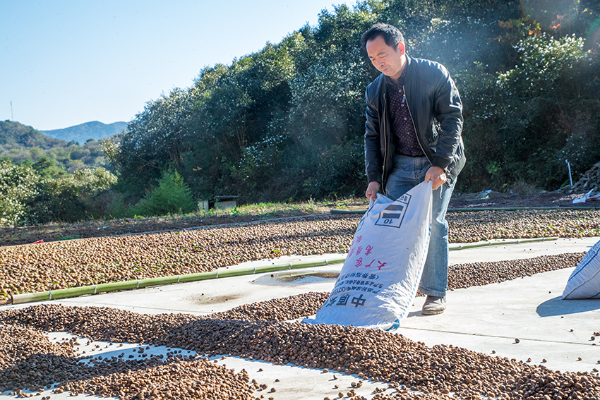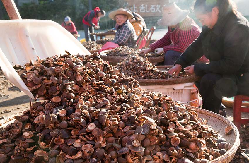 农民们忙着晒茶籽、打茶油,一桶桶茶油走进寻常百姓家,并出口欧美很多国家。据了解,仅大别山区的新县,油茶面积就有30多万亩。