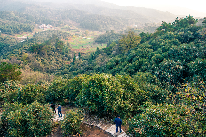初冬时节,河南大别山区油茶花盛开,胜似春华。