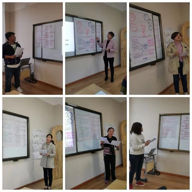 之后,老师们以小组合作的形式展开讨论,在“明确课程纲要结构和要素”“依据课程纲要评议表,交换学科进行小组评议”“审议‘背景’部分,‘瘦身’行动”“找出目标存在的基本问题”等连贯任务驱动下,采用多种多样的形式呈现小组的收获和困惑,并分小组进行分享交流。最后,周教授为大家答疑解惑并明确下一步的工作重点。