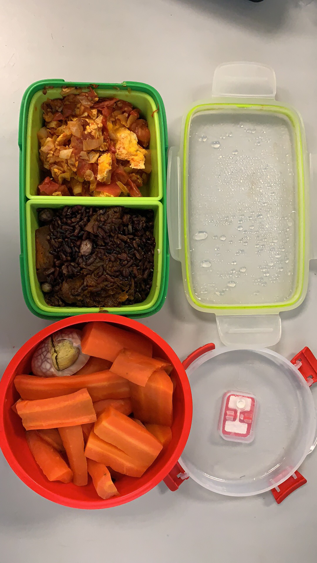 3月17日,记者看到青青的午餐菜谱是番茄炒鸡蛋、清蒸红萝卜、半个卤蛋和一份黑米杂粮饭,餐品装在乐扣盒中,“加热的话,可以用单位提供的微波炉,有时也会在单位的热水器上面放着,可以保温一上午。”青青告诉记者,她个人感觉自己做午餐并不难,头天晚上备好菜,早上做饭大概20分钟就能搞定,自己也曾带过牛肉青椒、咖喱鸡肉、酸辣土豆丝、肉丸汤等家常饭,“一般都是炒菜和米饭,汤汤水水不太方便。”