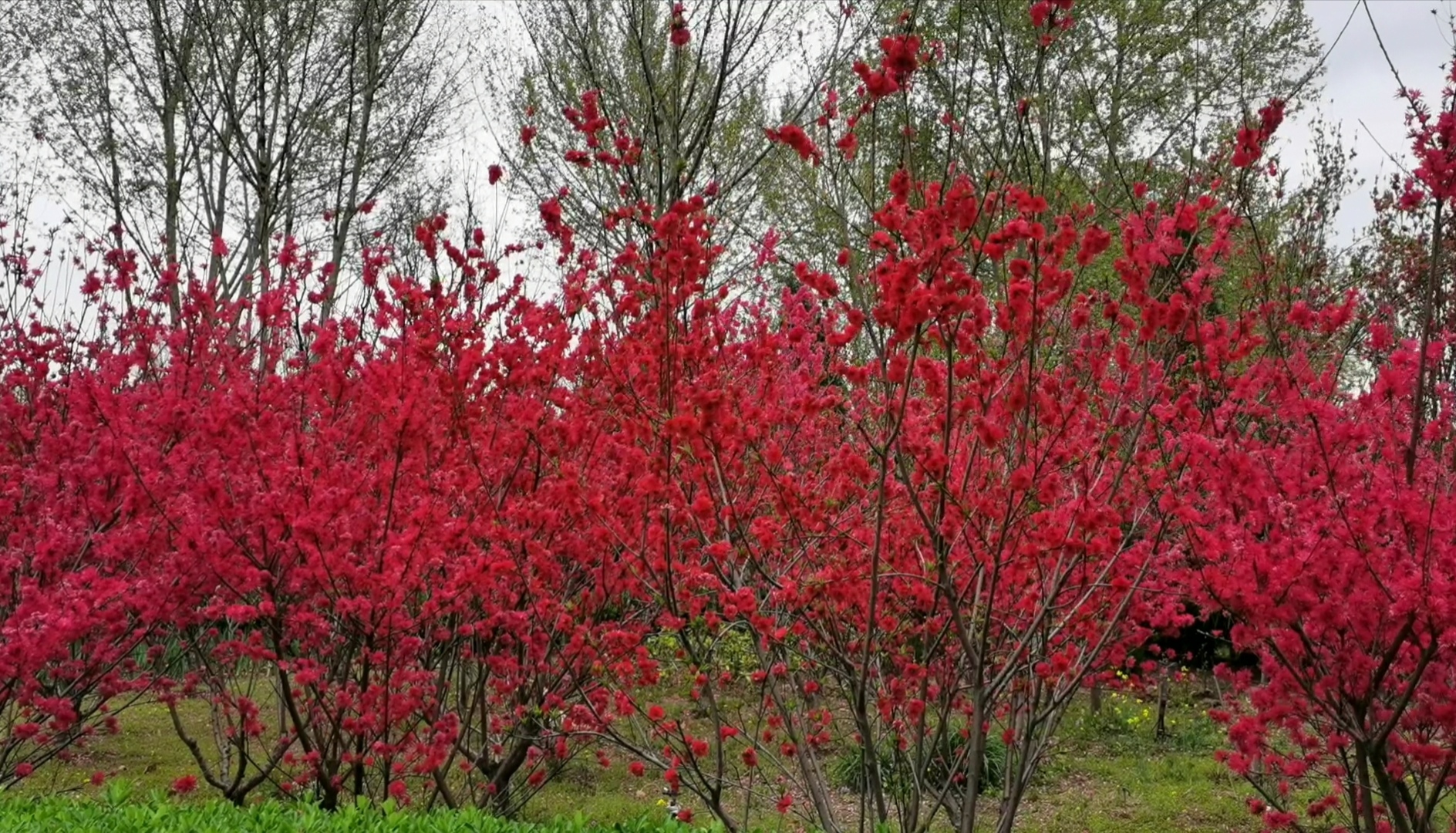 郑州公园广场桃花绽放,进入盛花期