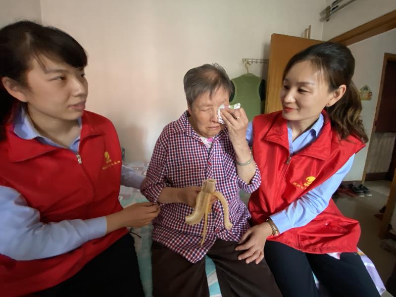 年过八旬的老太太看着她们送来的新鲜蔬菜和水果,拉着虎萍的手就不舍得松开了,老太太激动地哭着说:“真是太谢谢妞妞你们了,我这老太婆年纪大了,儿子也不在身边,没人会管我,要不是你们,我都不知道该咋办了,真的太感谢你们了。”