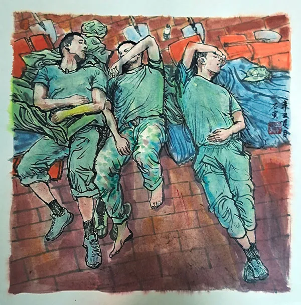 石品《抗洪救灾纪实系列·青年突击队》中国画