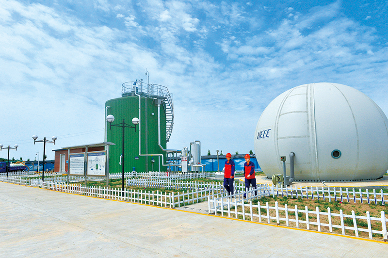 梁家河村曾是陕北黄土高原上的一个传统小山村。上世纪70年代,当地村民在北京知青习近平的带领下,建设了当时全省第一座沼气池,拉开了当地发展循环生态农业的序幕。之后的40多年时间里,梁家河村民利用沼气渣肥发展生产生活,享受到越来越多循环生态农业带来的实实在在的收益。2016年底,陕西省延川县梁家河流域千亩生态果园水肥一体化200立方米沼气示范工程投入使用,梁家河村果业生产肥水一体浇灌进入自动化模式。图为农业农村部建设的梁家河现代沼气设备。 叶晓宁/摄