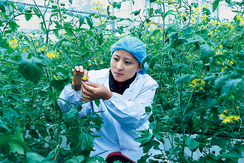 乡村振兴,产业兴旺是重点。当前,推动农业供给侧结构性改革往深里做、往细里做,就是要紧紧围绕“巩固、增强、提升、畅通”八字方针,因地制宜发展特色农业、现代农产品加工业以及乡村旅游、“互联网+”等新产业新业态,实现乡村产业兴旺,促进农民就业增收。图为2018年12月4日,在江苏省南通强盛农业科技发展有限公司,技术人员对无土栽培的樱桃番茄进行人工授粉。 新华社发 向中林/摄