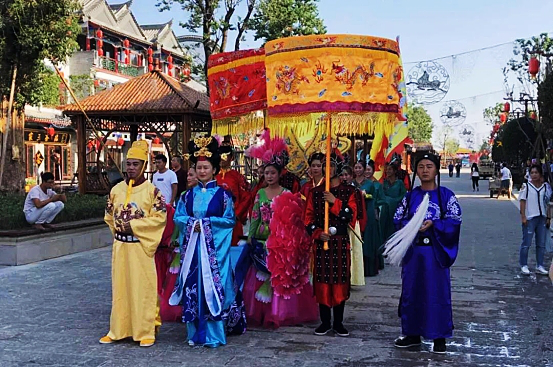 驿使出巡各街道,卡通人巡街与游客合影,抛绣球选亲巡游,新郎遇人拱手回礼,跳大绳,推铁环,篝火狂欢,游客与流浪歌手对唱,快乐不断,尽情狂欢。非物质文化遗产打铁花震撼演绎;情景剧《成化帝回师驻马驿》、《崇简王选婿》高度还原,给游客一个全新的视觉体验;大型豫剧《皇家驿站》精彩呈现明成化年间历史故事,精彩纷呈,让人过目难忘。